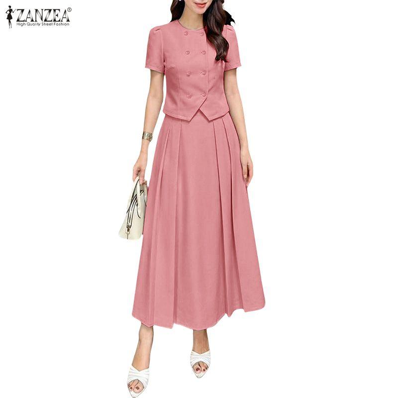 ZANZEA Blusa a Maniche Corte da Donna e Gonne Lunghe Casual Set Completi Due Pezzi