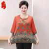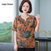 T-shirt Estiva da Donna Taglie Forti Stile Cinese con Stampa Floreale