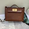 2026 new leather women's bag first layer cowhide Fubao leather briefcase 2424 gold buckle portable messenger bag