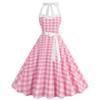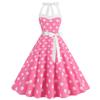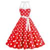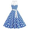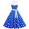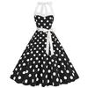 Retro Polka Dot Halter Flared Dress - European & American Hepburn Style with Lace-up Backless Design for Bridesmaid or Performance