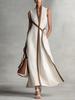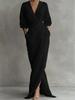 Elegant Solid Color V-Neck Long Sleeve Maxi Dress with Waist Pocket