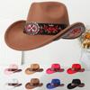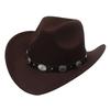 Women Men Western Cowboy Hats Felt Hat Fedora with Upturned Brim and Faux Silver Accents Wide Brim Fedoras Hat Ethnic Style