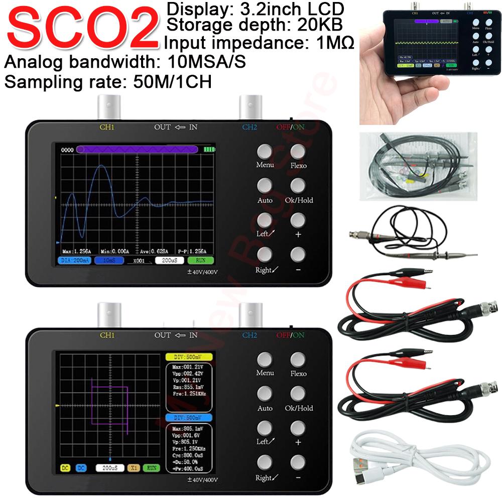 SCO2 Dual Channel Digital Oscilloscope 50M Sampling Rate 10MSa/S Analog Bandwidth One Key AUTO 20KB Memory Depth Trigger Functio
