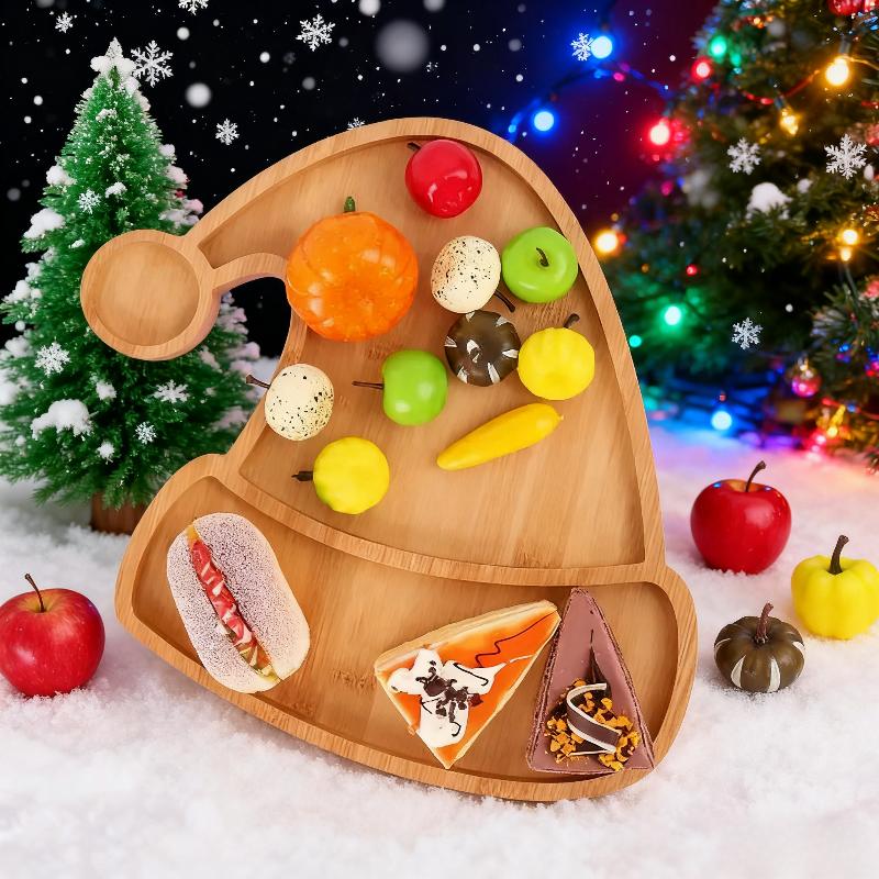 Wood Christmas Tray Elk Christmas Tree Hat Pattern Candy Dish Platter Cartoon Pallet Salad Sashimi Sushi Nut Snack Dessert Tray