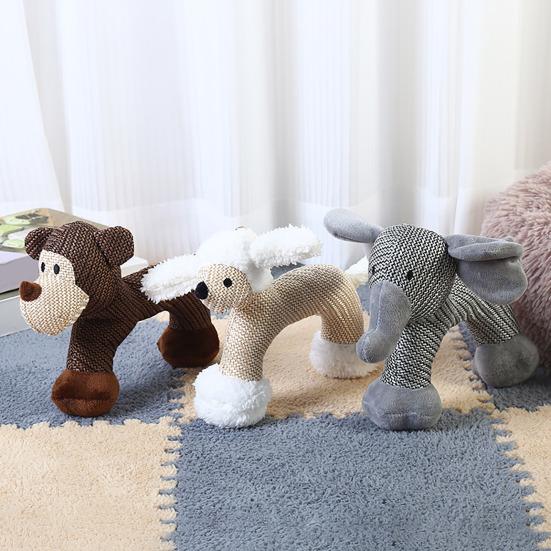 This durable dog toy features adorable animal shapes like dogs and elephants, crafted from soft yet chew-resistant linen fabric to withstand vigorous play. Designed for long-lasting fun, it endures chewing, pulling, and retrieving, making it ideal for everyday use.