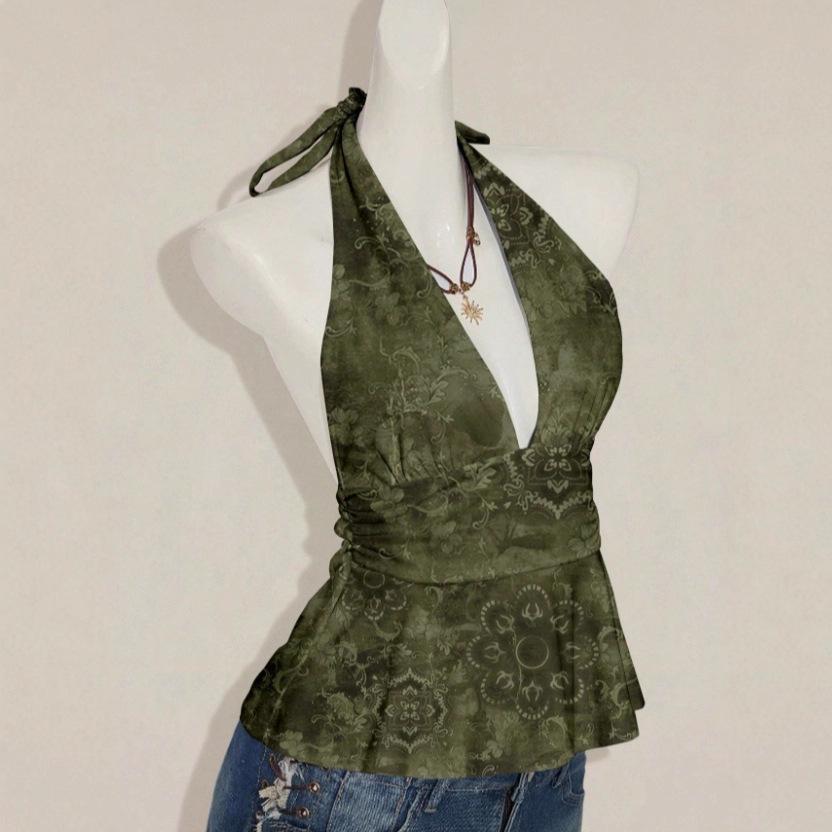 Stylish Multi-color Halterneck V-neck Pleated Vest - Summer Fashion