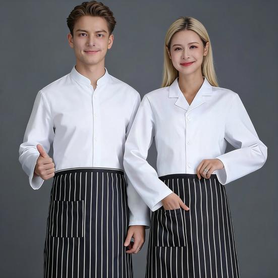 Chef Uniform V-Neck Front Buttons Unisex Workwear with Practical Pockets Professional Cooking Uniform
