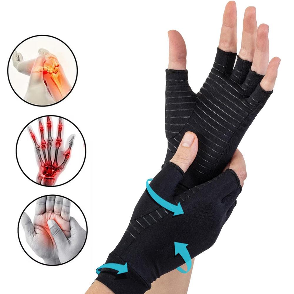 1Pair Copper Compression Arthritis Gloves Fingerless for Carpal Tunnel, RSI, Rheumatoid, Tendonitis, Hand Pain, Computer Typing