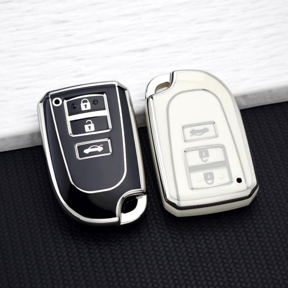 Silver Line Car Key Cover Case for Toyota Yaris Hiace 200 Sienta 2020 TPU Remote 3 Buttons Key Protective Bag Key Chain Set