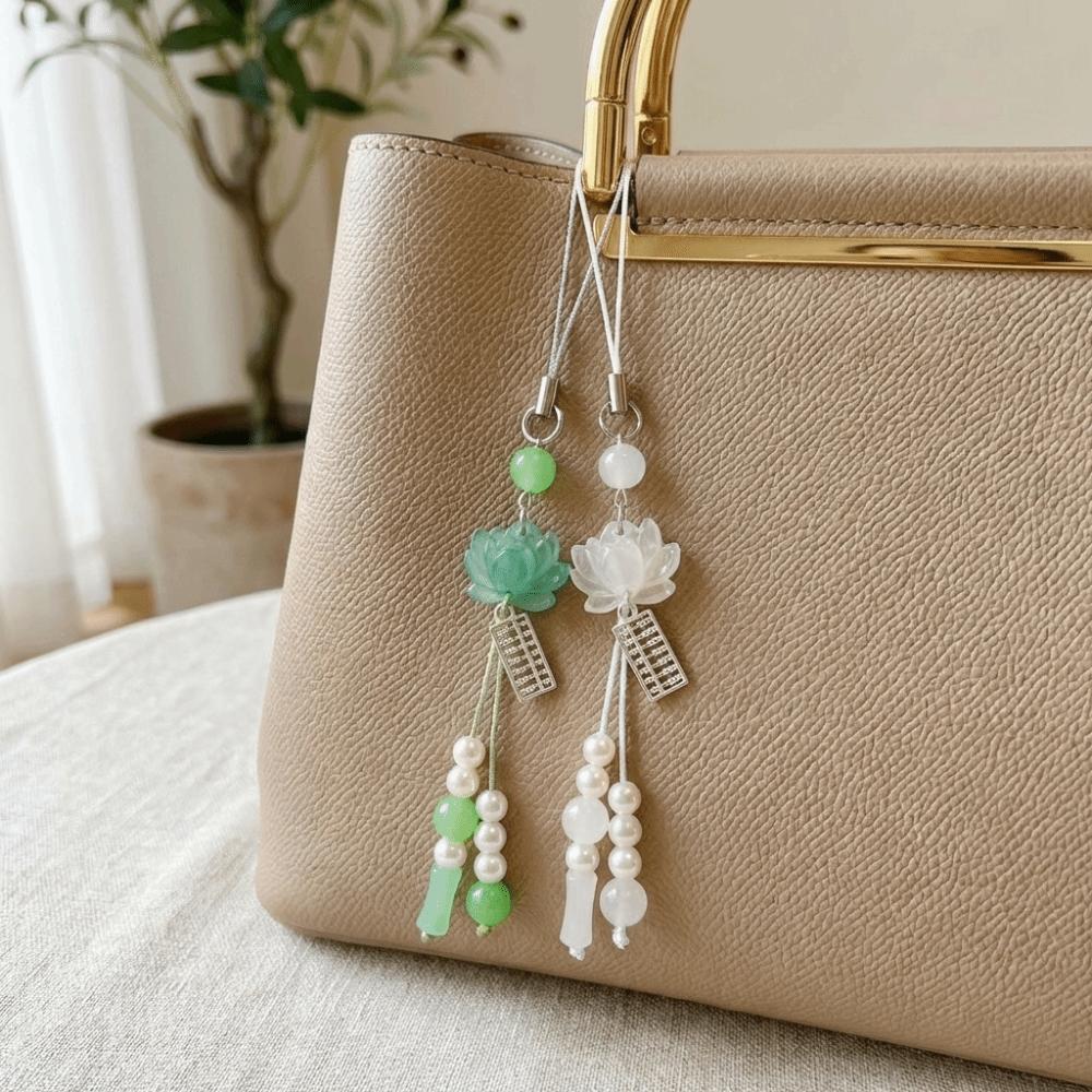 Tassel Detail Chinese-style Pendant Vintage Mobile Phone Chain New Lotus Beaded Key Chains Unisex