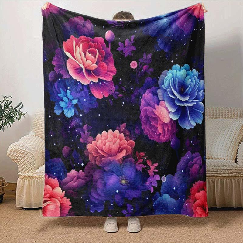 1pc Flower Printing Lightweight Flannel Blanket, Comfortable and Warm Blanket, for Camping Sofa Bed and Couch Office, Suitable for Gift Blank