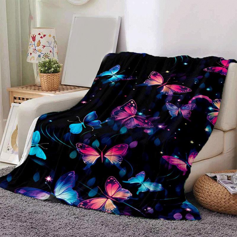 1pc Butterfly Printing Lightweight Flannel Blanket, Comfortable and Warm Blanket, for Camping Sofa Bed and Couch Office, Suitable for Gift Bl