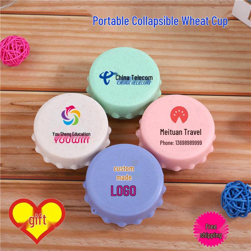 Custom Printed Portable Wheat Straw Telescopic Mouthwash Cup