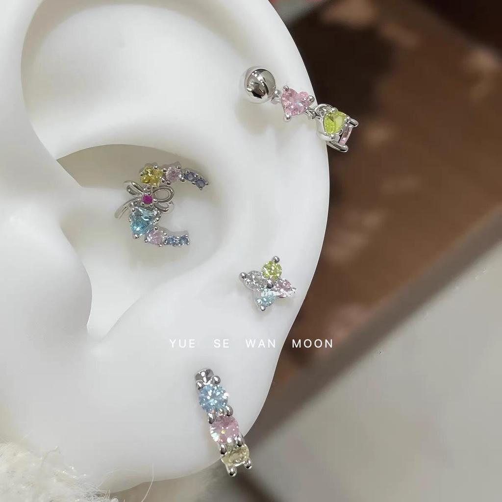 Colorful Zirconium Titanium Steel Stud and U-Shaped Ear Cuff Earrings for Women