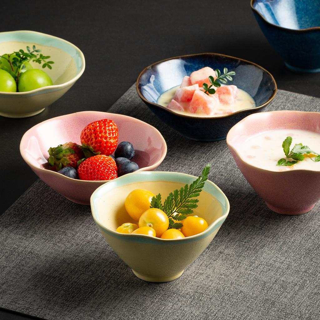 Japanese Petal Ceramic Bowl Sugar Water Bowl Restaurant Dessert Bowl Household Breakfast Bowl Specialty Snack Bowl Dipping Sauce Bowl