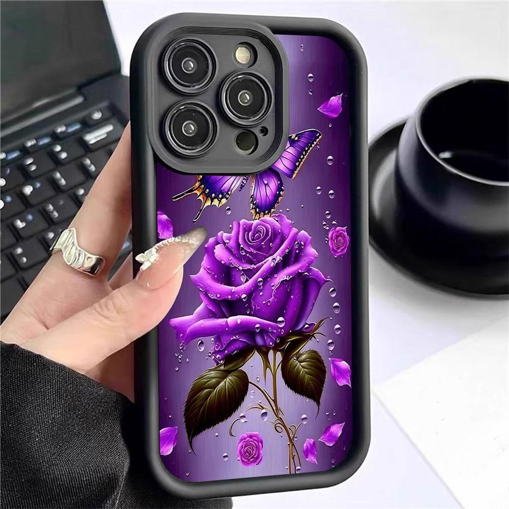 Purple Rose Black Staircase Phone Case for iPhone 15/16/17 Pro Max - Protective and Stylish