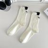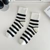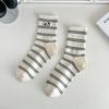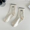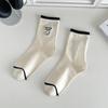 Women's Japanese Style Striped Cartoon Puppy Mid-Calf Cotton Socks - Cute, Breathable, and Versatile Embroidery Design.