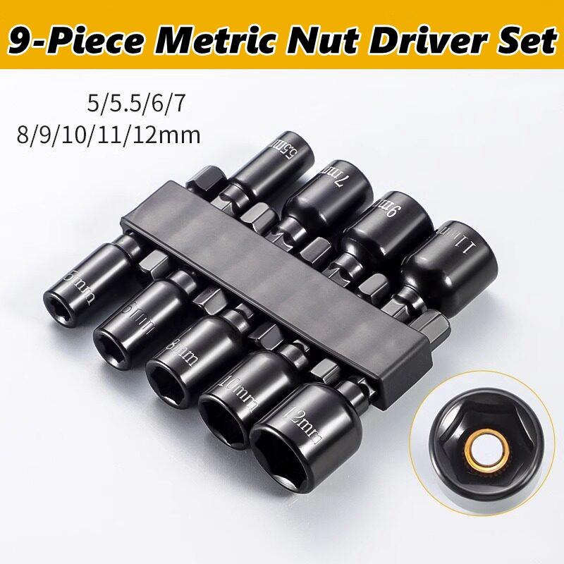9pcs Electronic Hex Key Socket Set with 1/4 Inch Hex Shank Power Nut Driver Set Metric Hex Socket Drill Bits Chuck Adapter