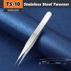 TS10-15 Anti-Static Stainless Steel Tweezers Precision Maintenance Pro Industrial Repair Curved Hand Tool Electronic Tweezers