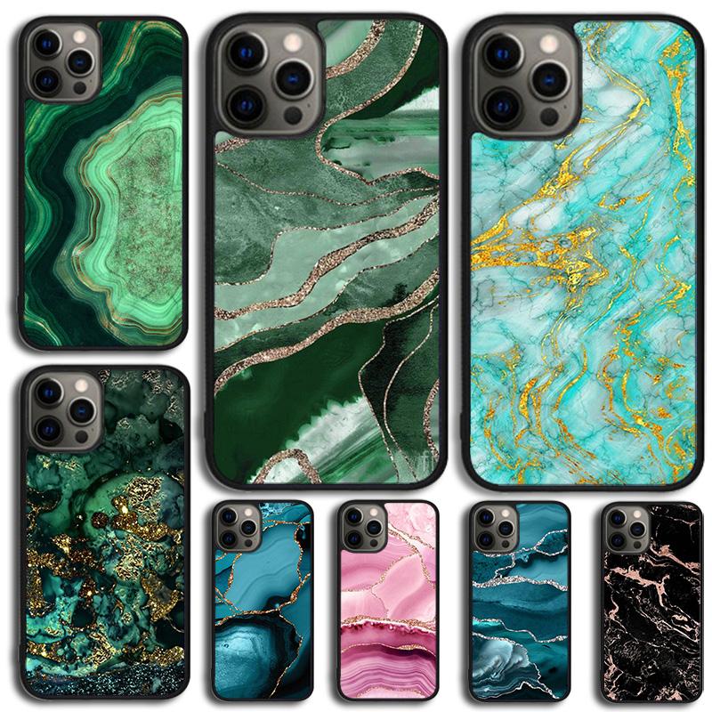 Teal Blue Gold Agate Marble Phone Case For iPhone 17 Air 13 12 14 15 16 Cover For Apple iPhone 17 Air Pro Max Plus Coque