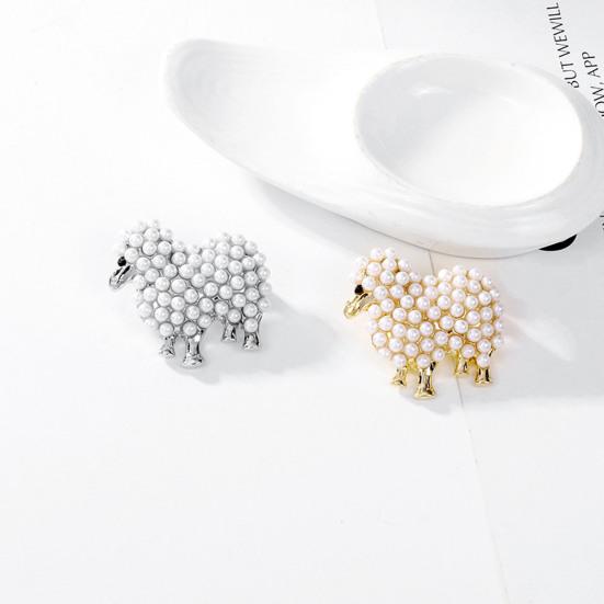 Zinc Alloy Brooch Imitation Pearls Inlaid Fluffy Sheep Design Pin Cartoon Style 3D Design Brooch Sweaters Coats Accessories