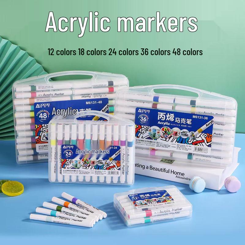 Acrylic Marker Pen Set - 12, 24, 36, 48 Colors for Kids Art and Painting with Portable Box