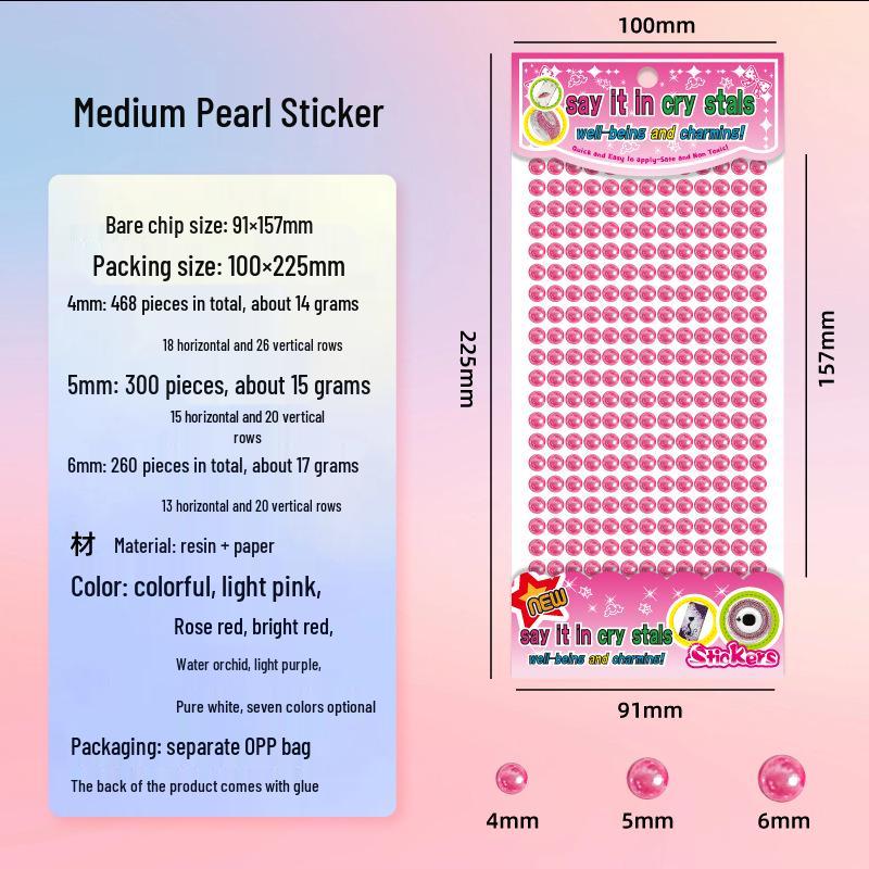 Medium Faux Pearl 4-6mm Colorful Rhinestone Gem Stickers for DIY Crafts