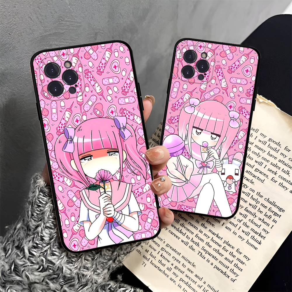 Anime Menhera Chan Phone Case For Iphone 16 15 17 13 14 12 11 Pro Max Plus Black Shell Cover Case