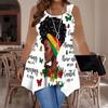 Women's Fashionable Casual Sports Double-ring Vest, Large-sized Tank Vest with Butterfly Printed Patterns, Irregular Hem, Elegant and Simple