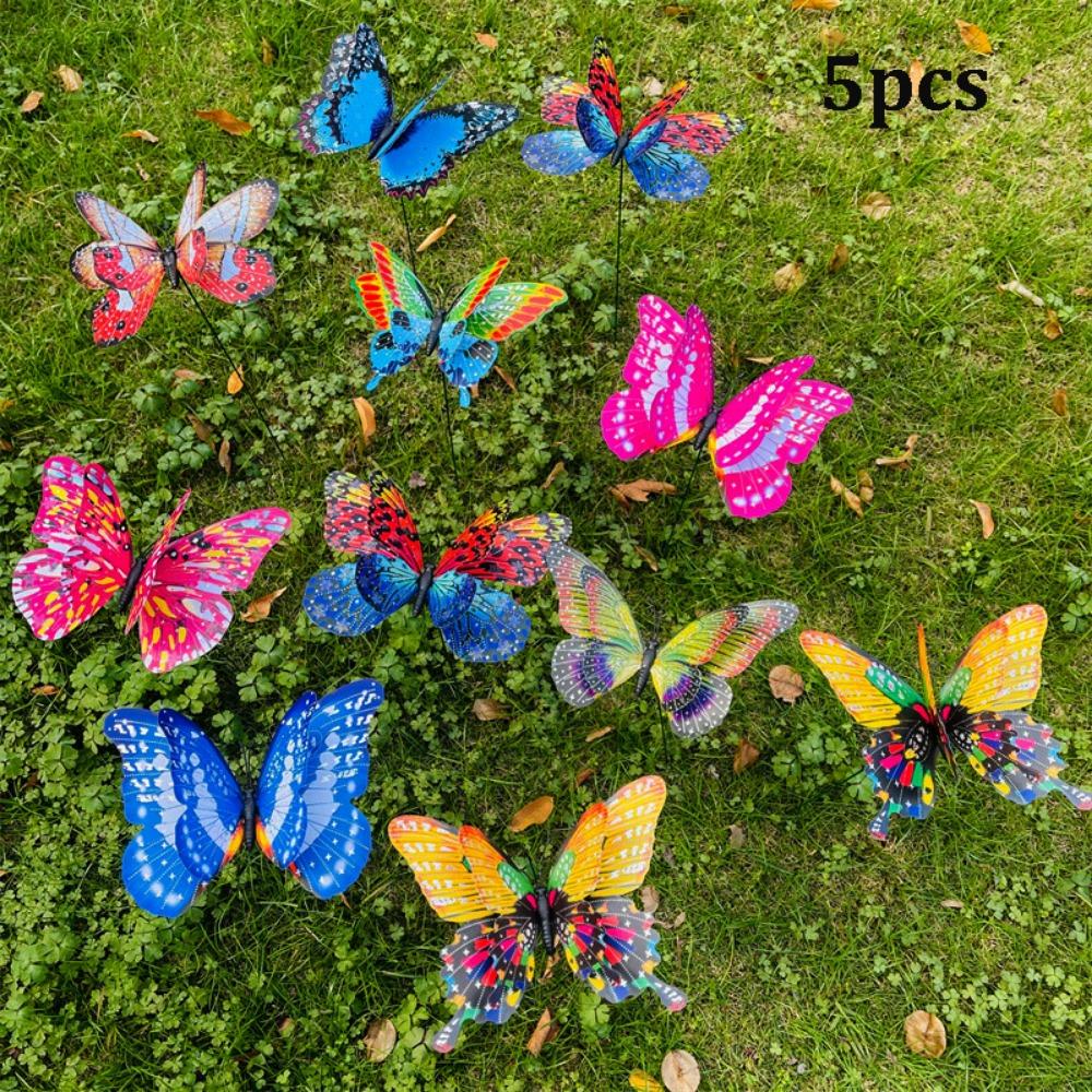 5pcs Large Garden Yard Planter Butterfly Colorful Waterproof 3D Butterfly Stakes Butterfly Double Layered Grounding Decoration
