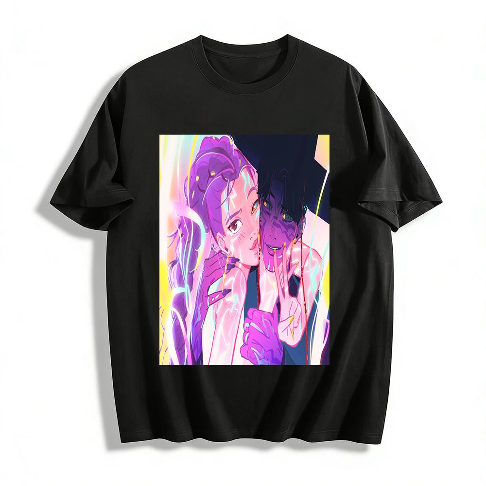 Cyberpunk Style Twin Portrait Print T-Shirt Trendy Streetwear Loose Breathable Unisex Top Pure cotton T-shirt