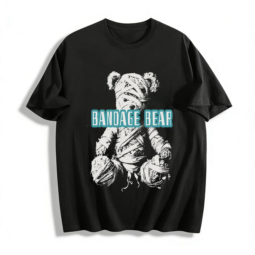 Bandage Bear Print Casual T-Shirt Unisex Loose Fit Breathable Crewneck Top For Daily Wear Pure cotton T-shirt