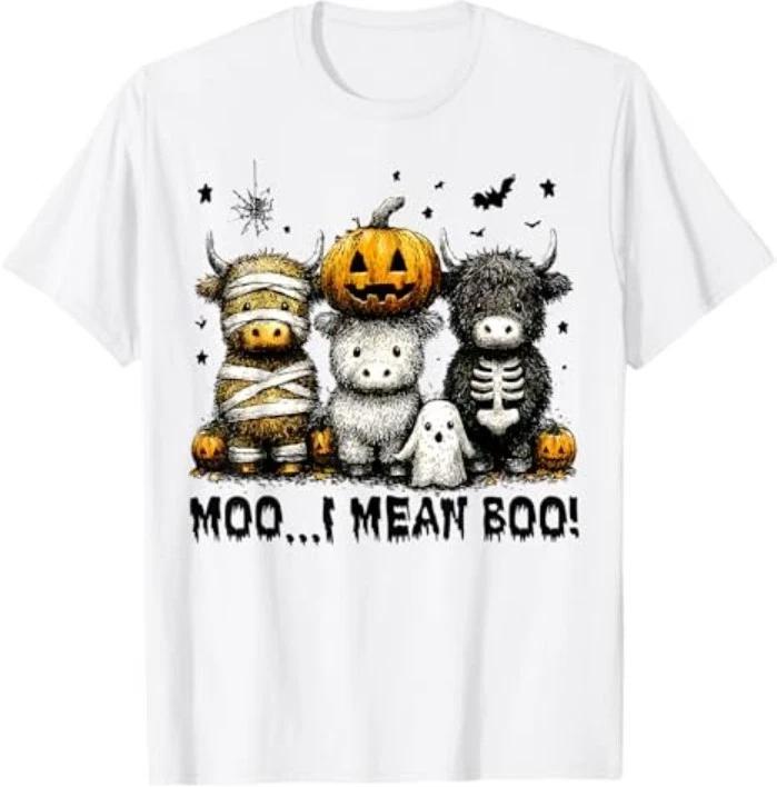 Ghost Cow Moo I Mean Boo Halloween Outfit Funny Cow Lover T-Shirt