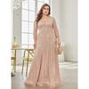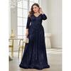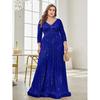 Cross-Border Amazon New Evening Dress Plus Size Sequined Long-Sleeved V-Neck Elegant Long Dress for Parties and Banquets