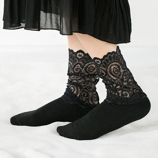 1 Pair Autumn Winter Women Lace Socks Mesh See Through Hollow Out Solid Color Sexy Elasticity Mid Tube Socks Daily Wear