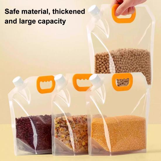 Airtight Food Storage Bag with Lid Freestanding Rice Storage Pouch Sealed Reusable Grain Storage Bag for Flour Beans Kitchen Cabinet Pantry
