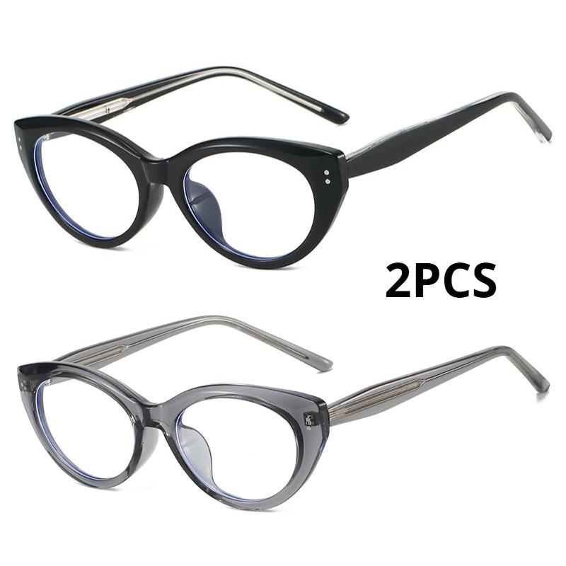 2PCS Transparent Glasses Women Cat Eye Anti Blue Light Flat Glasses Trend Decorative Eyepiece Computer Blue Filter Glasses