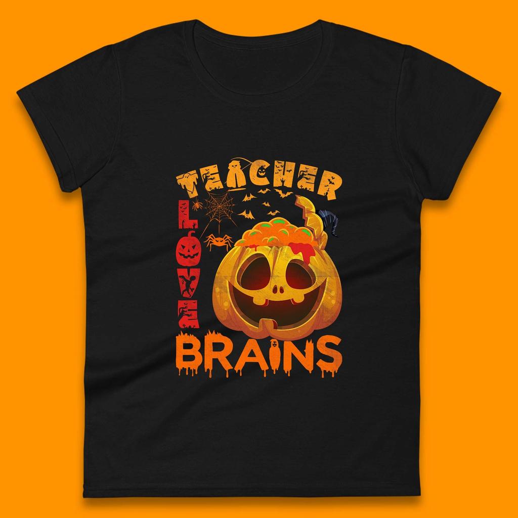Teacher Love Brain Halloween Spooky Teacher Trick Or Teach Womens Tee T Shirt Mens Tops Unisex Top