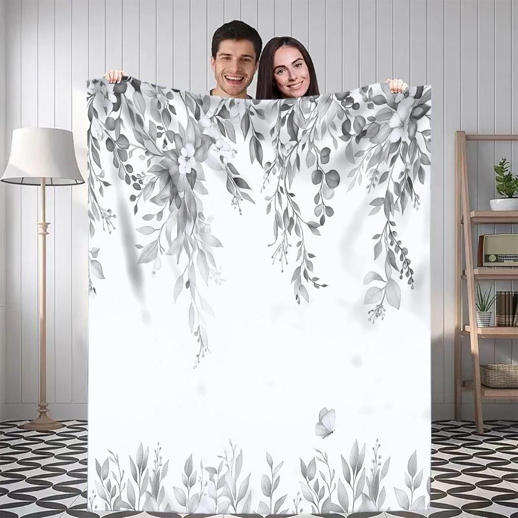 1pc Leaf and flower patterned blanket polyester fabric machine washable suitable for bedroom and living room décor