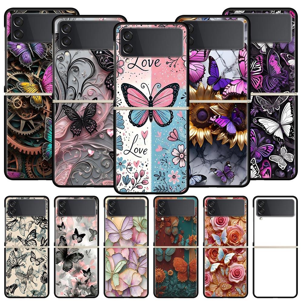 Fashionable Butterfly Flower Pattern Hard PC Phone Case For Samsung Galaxy Z Flip 7 6 5 4 Black Cover For Galaxy Z Flip 3 Shell