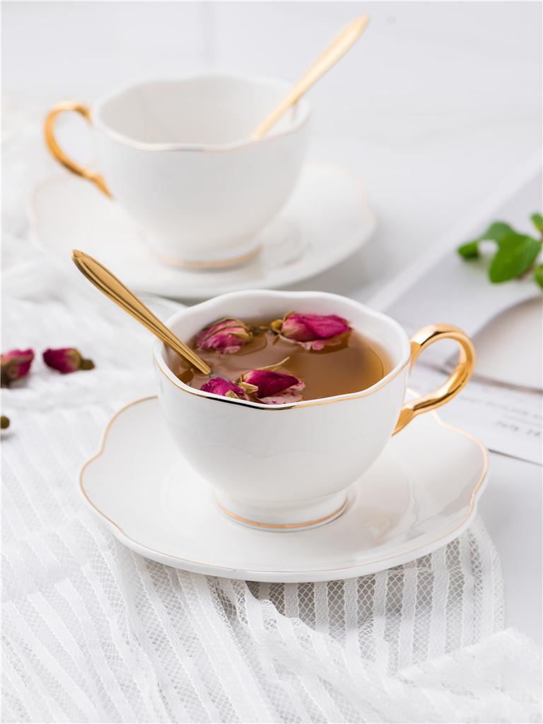 200ml White Ceramic Coffee Cup Gold Inlay Bone China Tea Cup Saucer Spoon Set Advanced Porcelain Teacup Party Teatime Drinkwar