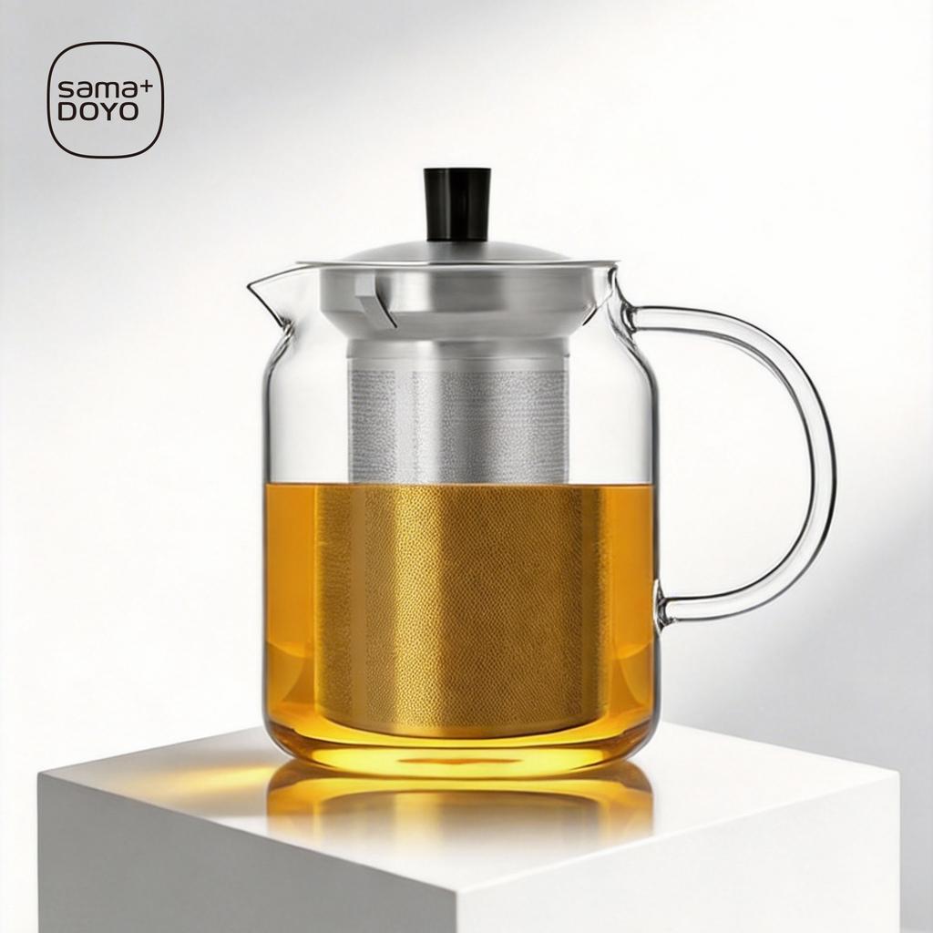 SAMADOYO-Teiera in Vetro Resistente al Calore, Teiera di Grande Capacità, Separazione e Filtrazione di Tè e Acqua, Teiera Domestica