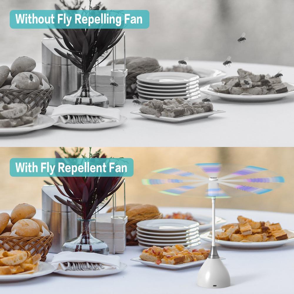 Fly Fans for Tables, Fly Repellent Fan with Soft Blades, USB or Batteries Powered, Soundless and Portable, for Picnic BBQ Party
