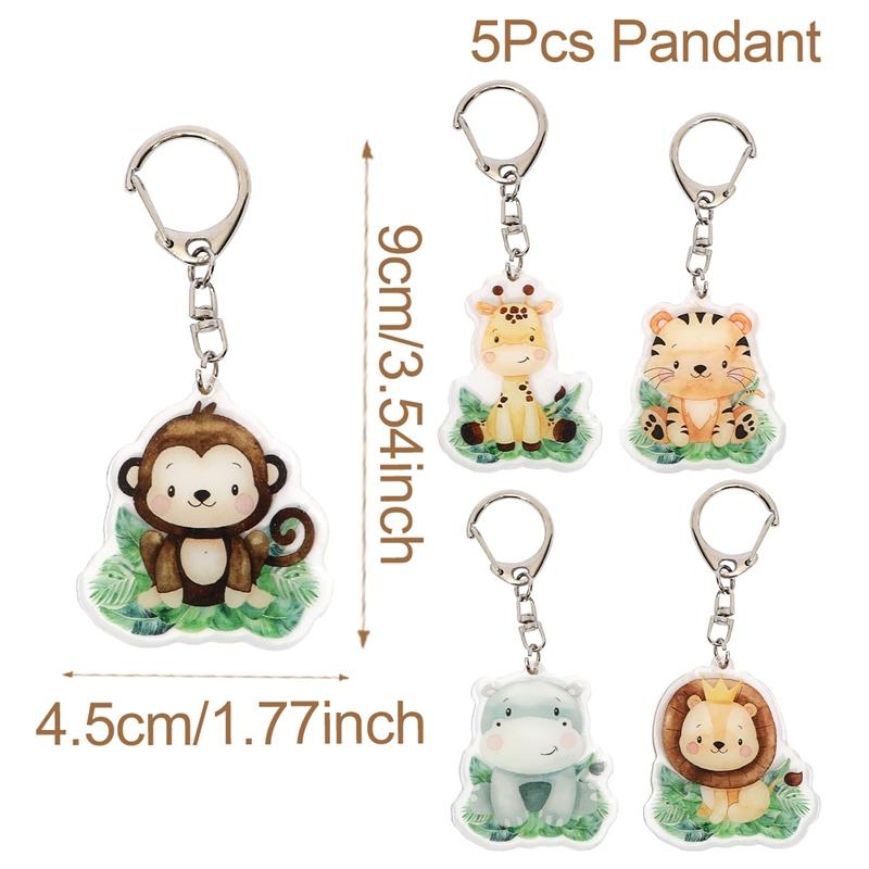 5pcs Cute Jungle Animal Style Keychains, Different Animal Pattern Acrylic Pendant, Party Decor, Party Gift Keyring