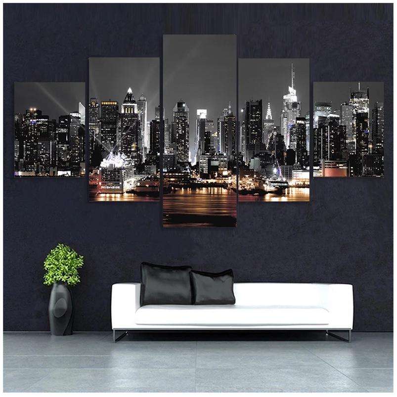 5 Pieces New York City Scenery Pictures Canvas Painting Prints Night View Poster Home Decor Wall Art for Living Room NO FRAME