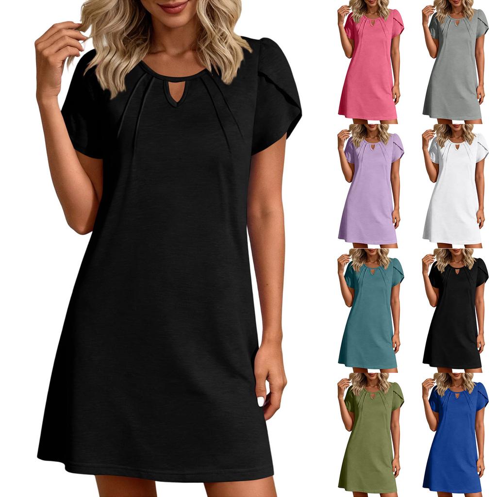 Women's Casual And Stylish Round-Neck Beach Dress: Short-Sleeve, Loose-Fitting Dress