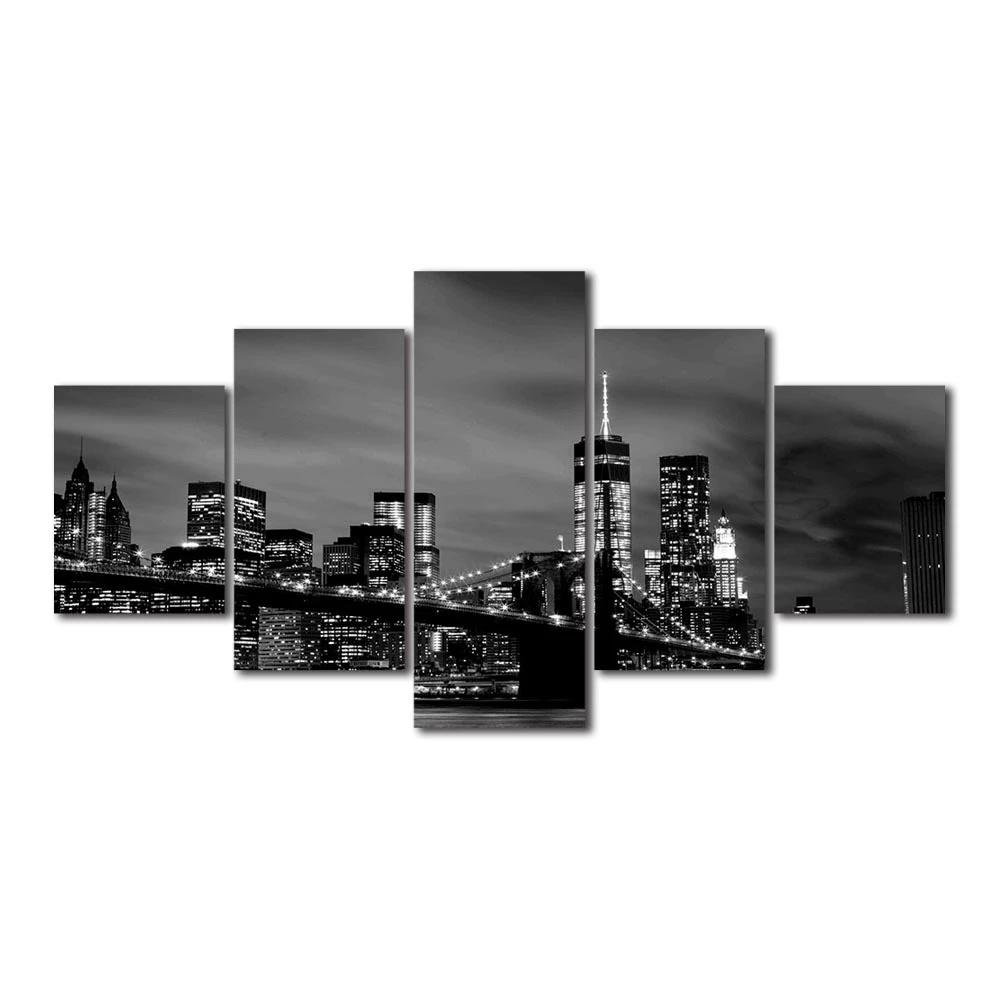 Canvas Painting Wall Art 5 Pcs New York Skyline Bridge Night View Poster Prints Modular Picture Home Decor Living Room No Framed