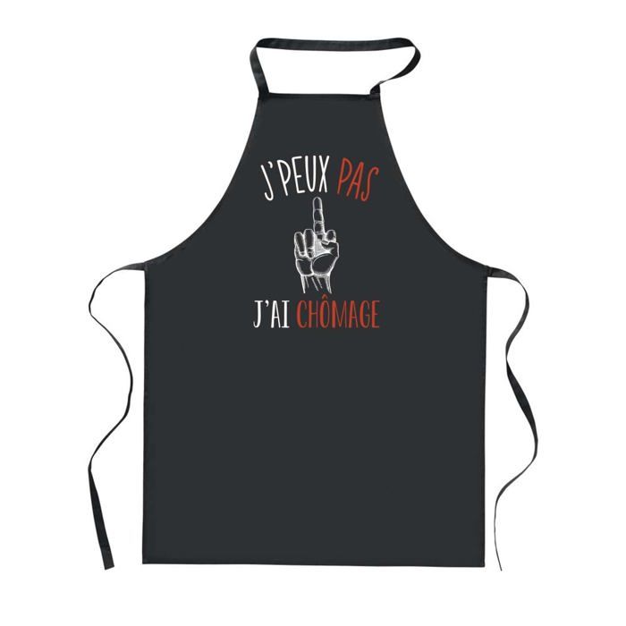 Tablier de cuisine - PLANETEE - J'peux Pas Chômage - Noir - 90x60 cm - Polyester