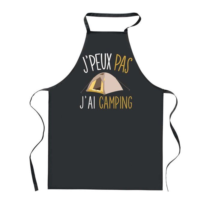 Tablier de cuisine - PLANETEE - J'peux Pas Camping - Noir - 90x60 cm - Polyester résistant