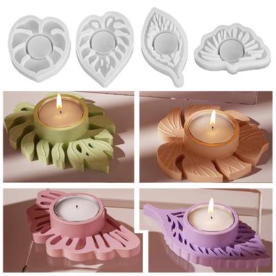 Leaves Candlestick Silicone Mold DIY Handmade Leaf Tealight Candle Holder Plaster Concrete Resin Craft Casting Molds Home Decor